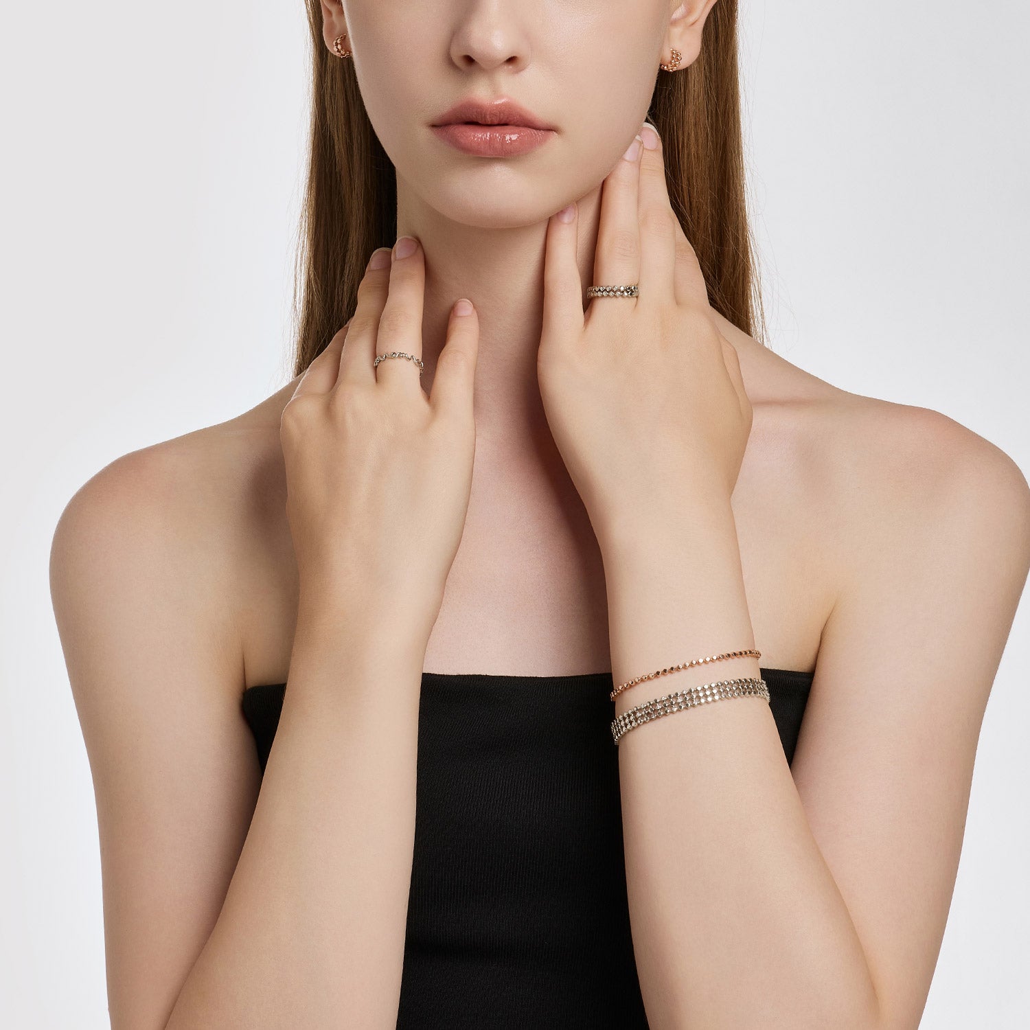 This rose gold bracelet from the Mon Paris collection is designed with a continuous line of refined geometric links, inspired by the rhythmic harmony of Paris’s Étoile. Its sleek, sculptural form symbolizes connection and continuity, making it a versatile piece that transitions effortlessly from everyday elegance to evening sophistication.