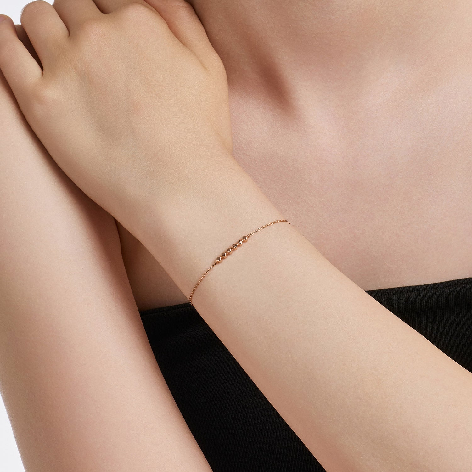 This gold bracelet from the Mon Paris collection captures the spirit of Paris’s Étoile—the French word for “star,” and also the name of the Place de l’Étoile, where the Arc de Triomphe stands at the center of radiating roads. The delicate chain is accented with a row of geometric links and a subtle diamond detail, while a star motif is hidden at the closure as a poetic finishing touch. Symbolizing connection, guidance, and harmony, this bracelet is a refined everyday piece with deep meaning.