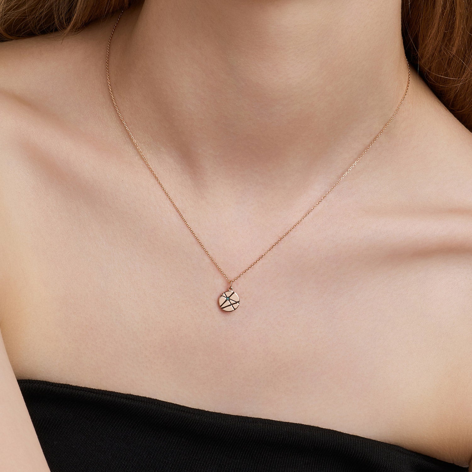 This rose gold necklace from the Mon Paris collection draws inspiration from Paris’s Arc de Triomphe and its radiating ring road. The round pendant is engraved with geometric lines echoing the city’s iconic star-shaped crossroads, centered with a single blue diamond that symbolizes a guiding point amidst converging paths. Minimal yet meaningful, this piece embodies architectural beauty and the timeless spirit of Paris.