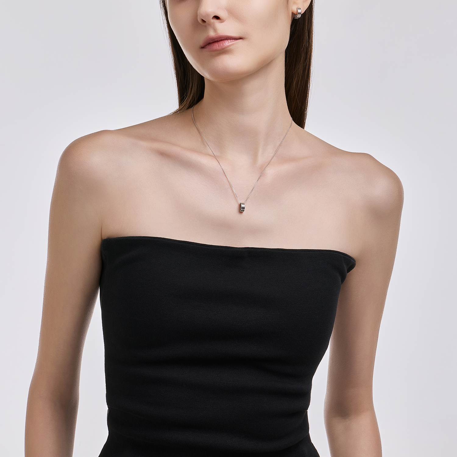 This silver necklace from the Signature. D line features a sleek pendant formed by layered curved lines that create depth and fluid movement. The clean, sculptural design reflects modern minimalism while subtly echoing the brand’s signature aesthetic. Elegant and versatile, it adds a refined accent that complements both everyday styling and contemporary looks.