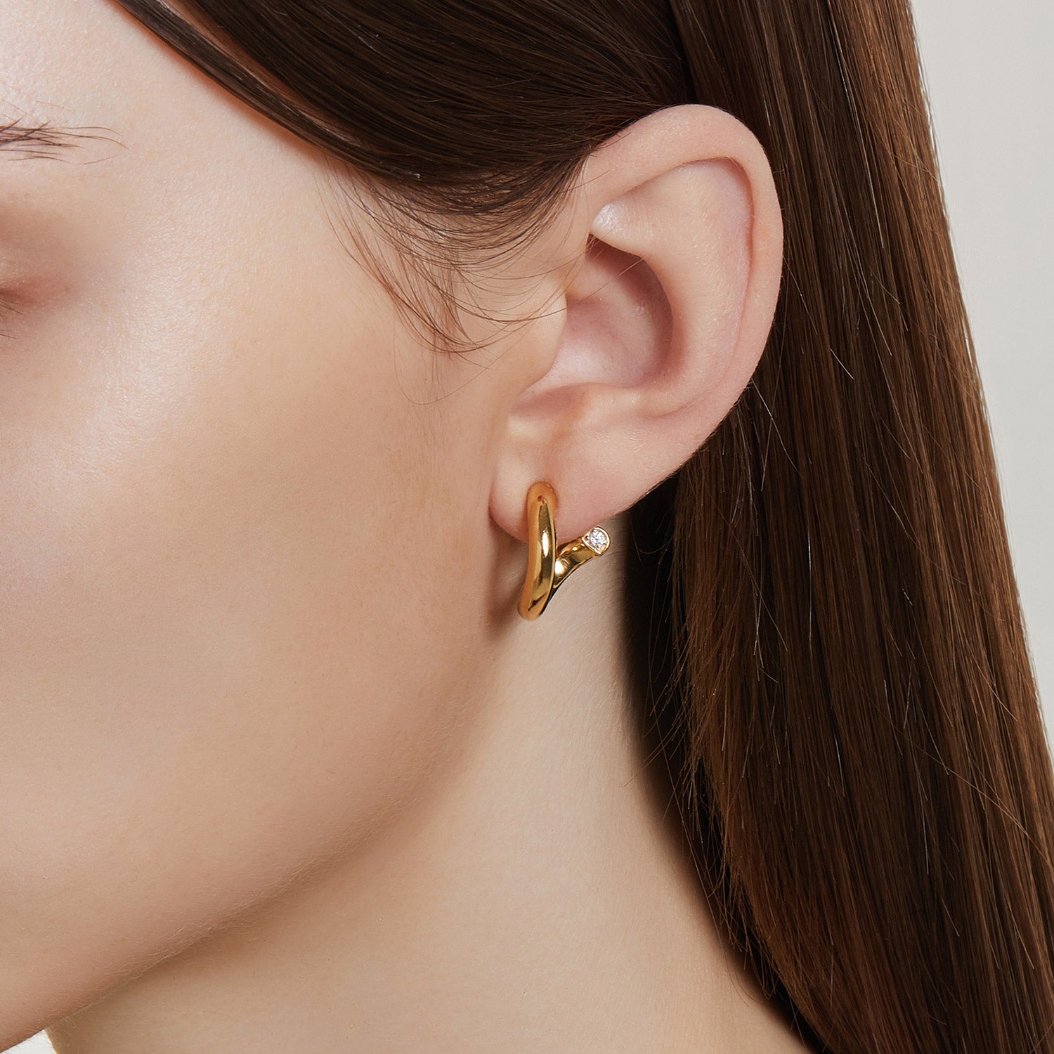 These sculptural yellow gold-plated hoops from Sélection. D collection express the perfect D-curve, accenting the shimmering cubic zirconia stone. Style them on their own or as part of a stack to create a timelessly cool look.