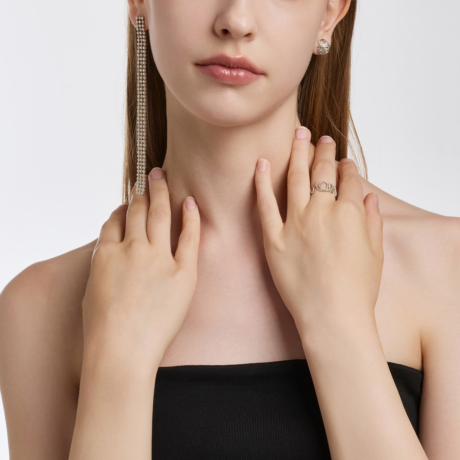This gold ring from the Mon Paris collection transforms fluid calligraphy into a sculptural statement. Designed as a continuous flowing line, it spells out “Mon” and is delicately accented with pavé-set brown diamonds, adding depth and brilliance. Inspired by the winding paths and intersecting stories of Paris, the design embodies movement, connection, and individuality — an artistic blend of modern elegance and poetic symbolism.